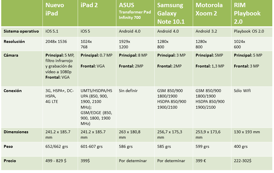 El Nuevo iPad vs el harén de tablets en el mercado